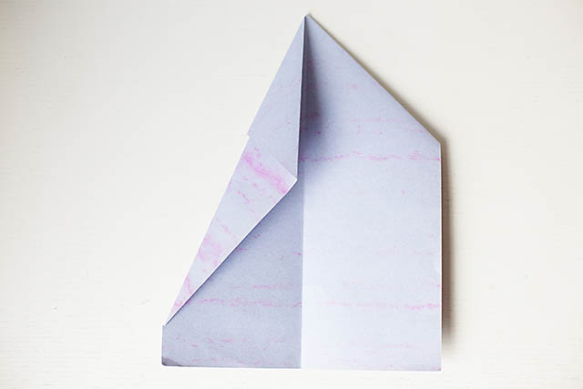 You’ll need an 8.5″ x 11″ sheet of paper for this one. Fold in half lengthwise and turn so the fold is facing down like a tent.