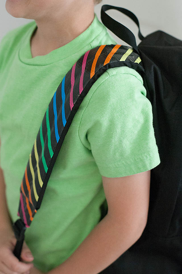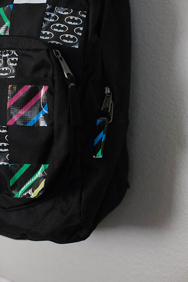 8. To add even more personalization wrap Duct tape around the zipper pulls and straps.