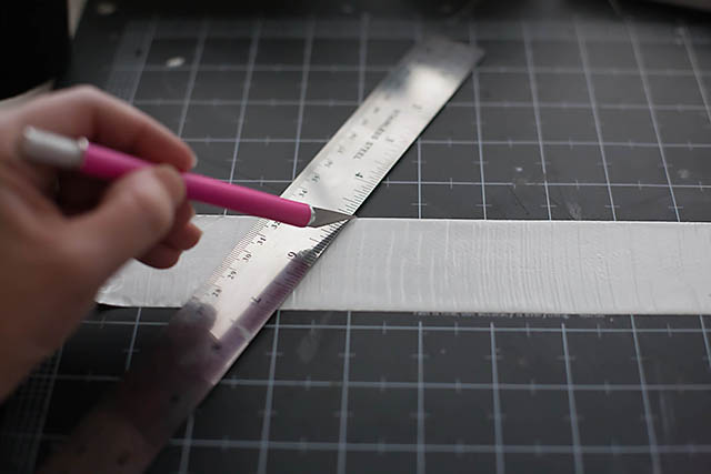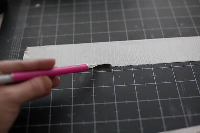 3. Using a ruler and a precision cutting blade, cut your preferred shape out of the Duct Tape. We chose triangles and squares.