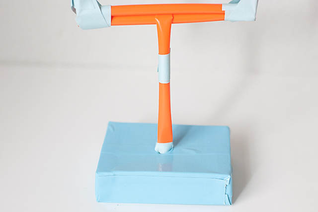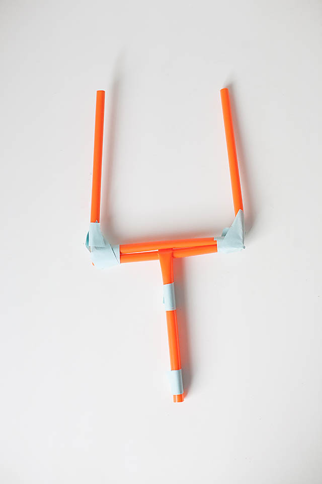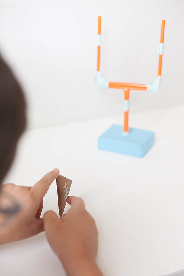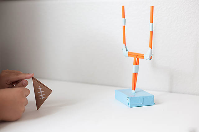 Fold your straws to create the “u” shape of the field goal posts and tape into position. We used colored washi tape for fun. You can use your team’s colors to make yours!