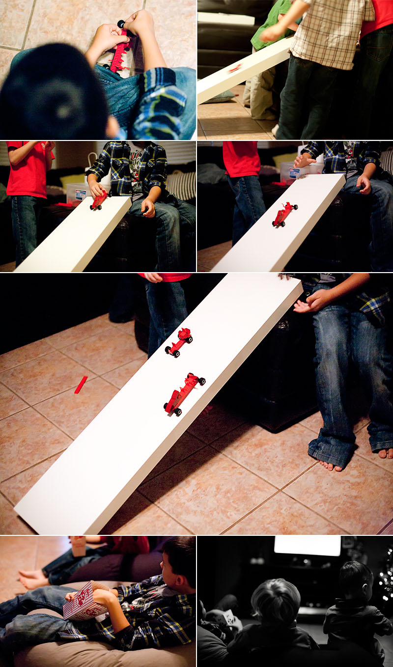 One of the activities we did was have a LEGO car race. We talked about doing it for his LEGO party but never got around do it so he was happy to have an excuse.