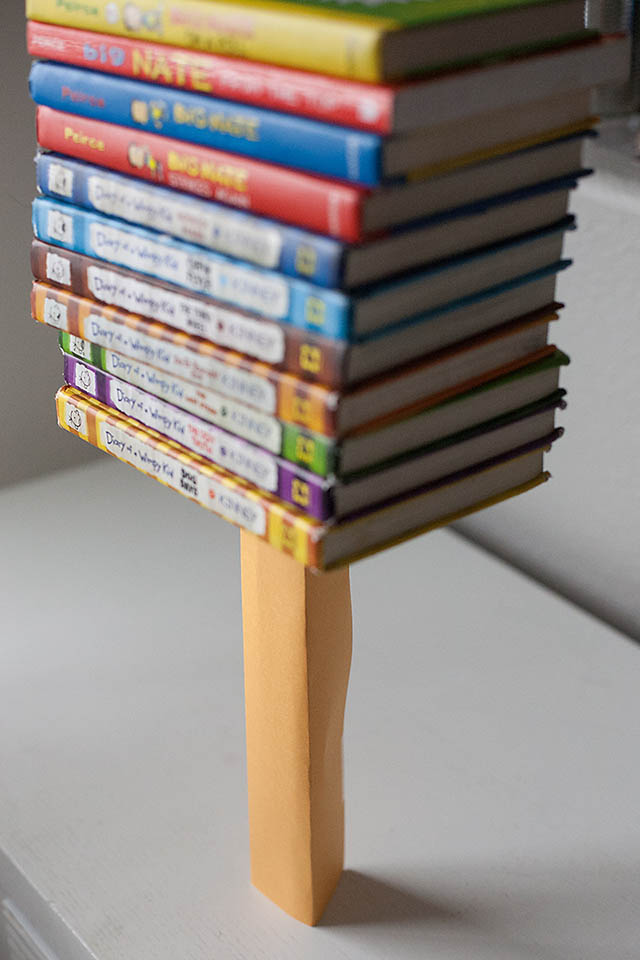 The triangle won with 12+ books! The cylinder held 9 and the square held 5 (but the seam was a little weaker on the square too) We used this information to make a card pyramid and discussed our thoughts on how the Egyptians built their pyramid without modern technology.
