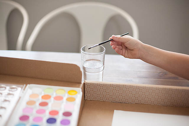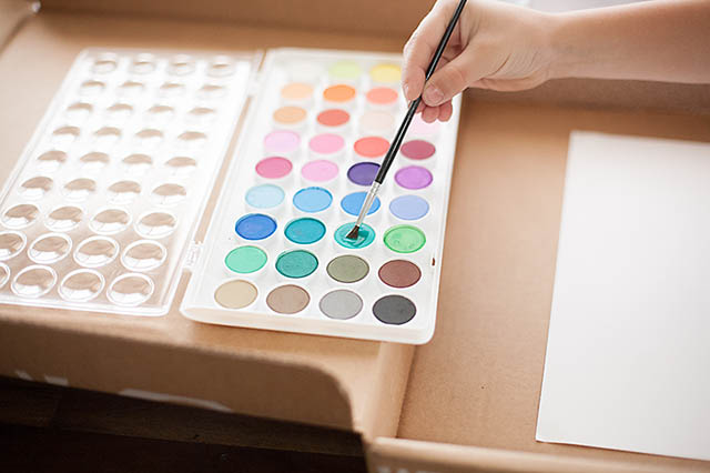 Load up your brush and water color of choice with water (a bit more than you usually would which isn’t hard for kids to do)