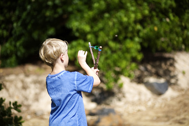 My boys did want me to share the slingshot they made with their dad. Aunt T found the perfect slingshot stick on a beach walk. Dad made some small slits in the wood for the rubber band to “hold” on to. A thick plastic piece from a bag of avacados made a center piece (leather would have been better but we couldn’t find any). By folding the plastic piece in half you can make a slit that doesn’t go all the way through that the rubber ban can grab on to. The slingshot even made it home with us!