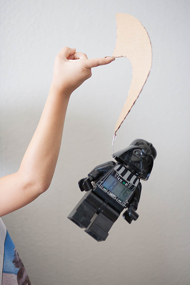 We saw this over on Pi’ikea St (a great blog for crafts!) and decided to try it out. I wasn’t sure at first how precise the cut needed to be so I wasn’t going to share it if it didn’t work out or was too difficult. It ended up being super easy and forgiving. We made 2 in a matter of minutes both with different scale/dimensions and they both worked!