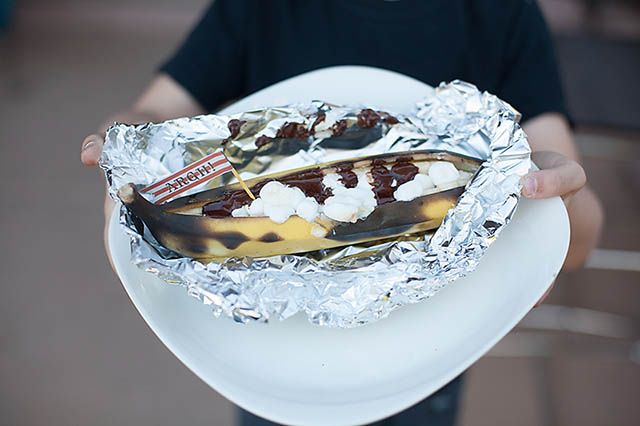 - Our favorite camping “treat” is roasted bananas! Add whatever toppings you want for a personalized snack.