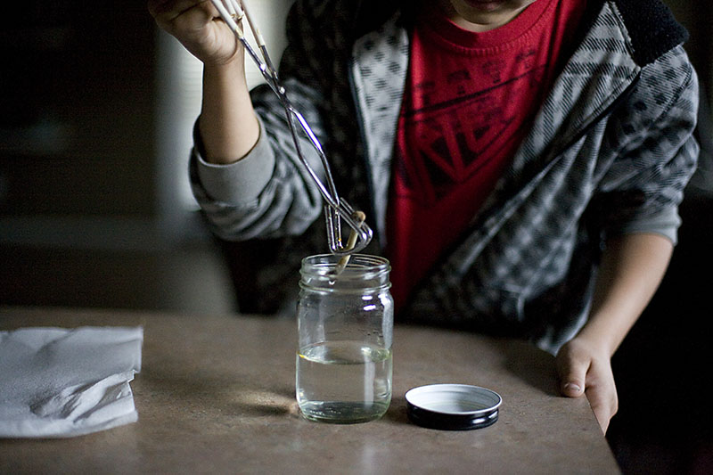 My 9 year old saw this expirement somewhere and has been wanting to try it out himself so this one was all him! You take a clean buffalo chicken wing bone and sumberge it in white vinegar in a glass jar with a lid and let it sit for 3 days. After the 3 days it’s supposed to be very “rubbery”