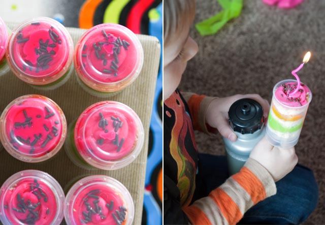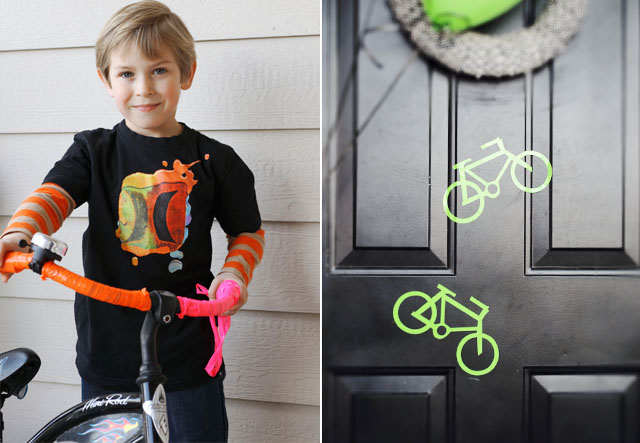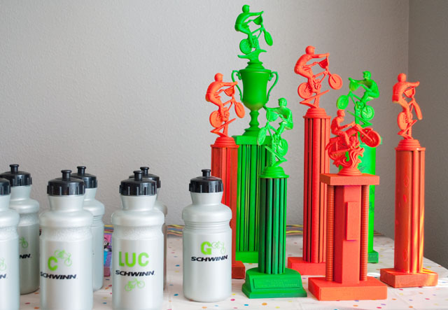 The kids each brought their bikes, parked them at a cone inside and went to stations to decorate their bikes for racing. I loved all the details including the neon trophies!