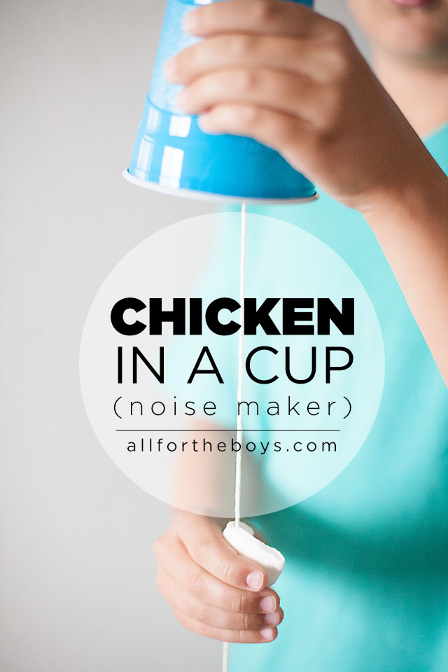 You know you love noisemakers! The cup acts as an amplifier for the vibrations you make with a wet paper towel and string making it sound sort of like a chicken!