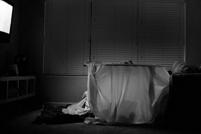This one is from us – our go to quick build fort, move the dining table in front of the sofa, adorn with sheets, and you have an instant fort. Move the sheets up for easy movie watching.