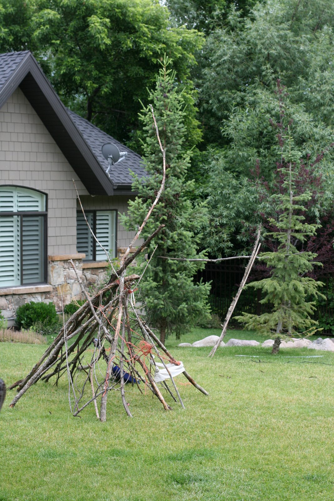 A living room fort may just have to do this weekend although I’m really digging this stick fort from See Jane Blog