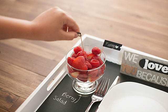 I wanted to pop in and share a fun breakfast in bed spread we created for the American Crafts blog. We made up a spread with little notes about why we love Dad on a fun breakfast tray. You could make this your own in lots of different ways but it’s a fun way to spruce up the traditional breakfast in bed!