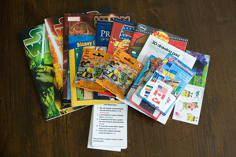 When they were younger I started keeping a secret stash of fun things to do when having to sit still. It’s changed a lot as they’ve gotten older. This is what my stash looks like right now