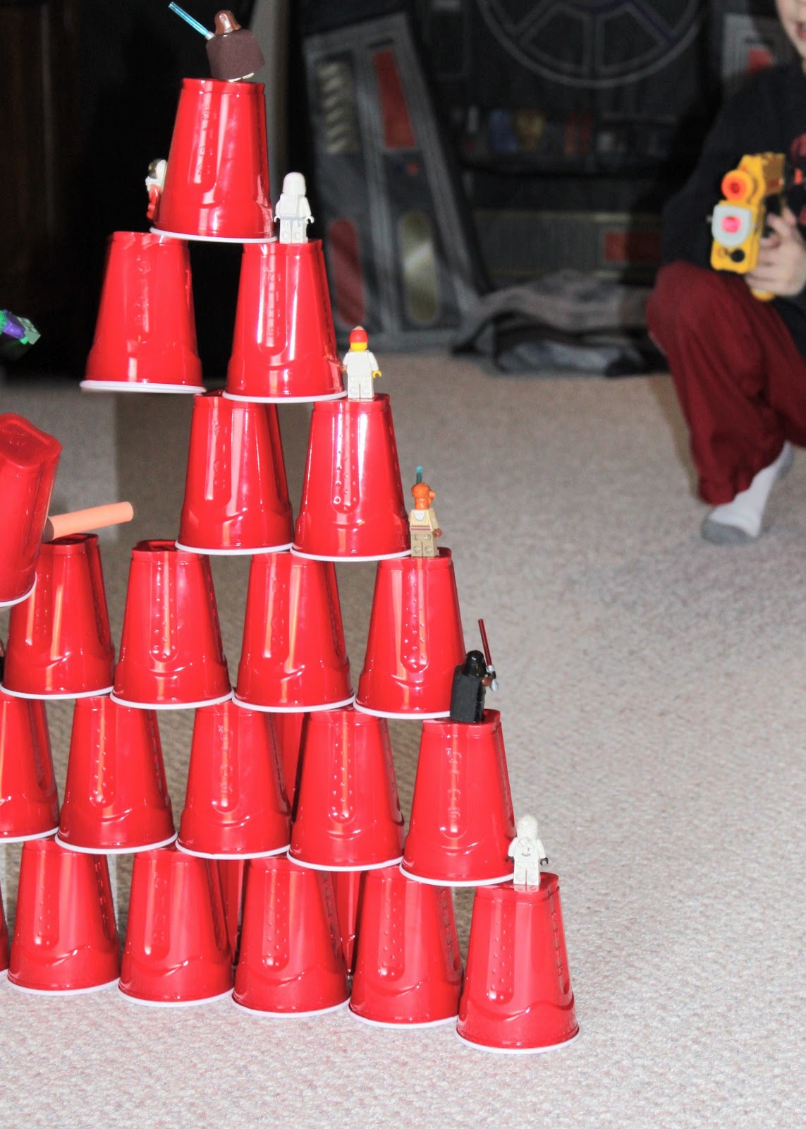 and Busy Kids = Happy Mom made an indoor target with cups and minifigs!