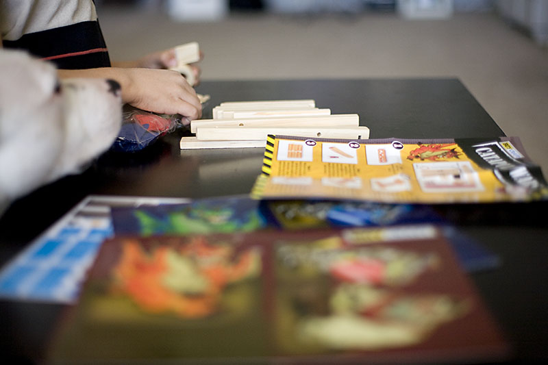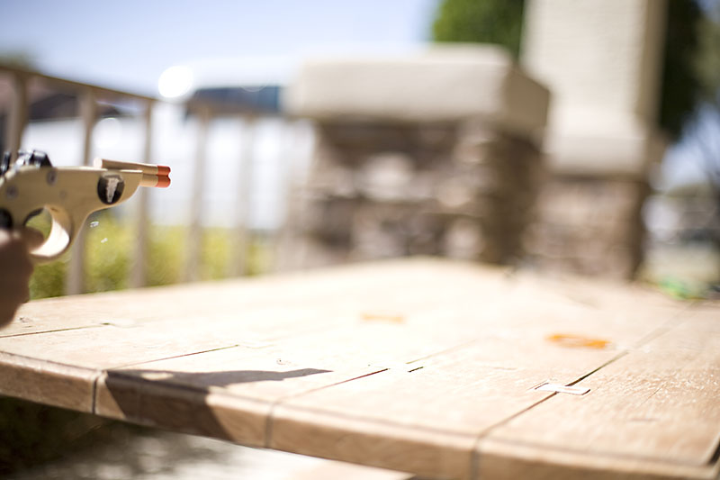 The Rubber Band Launcher was completed first and the boys loved it as I knew they would (it doesn’t launch them too hard since the rubber bands that come with the kit are larger but we still had the conversation about what you aim/launch at). They liked knocking down the paper figures that came with the kit and later moved on to Lego Darth Vader, Playmobil, and anything else they could set up.
