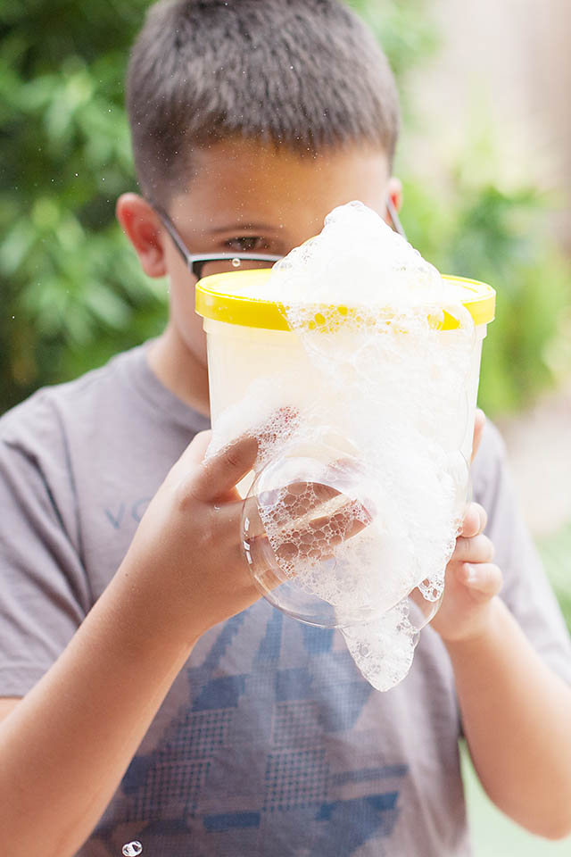 If you have young kids that don’t know the difference between blowing and sucking through a straw you’ll have to do the blowing for them otherwise they’ll end up with a mouth full of bubble solution!