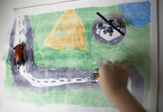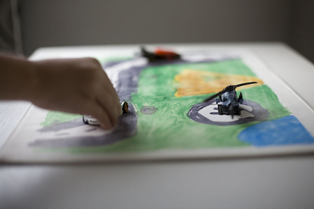 My boys made this playmat/placemat for a post over at Modern Parents Messy Kids. They made it with the intention of giving it as a gift but it has yet to leave our house. My 8 year old loved designing his own and wanted to do more scenes after this one!