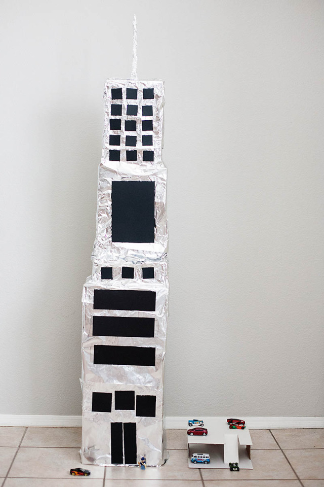 Did you know that yesterday was Skyscraper Day? It was! We made an awesome DIY skyscraper complete with parking garage