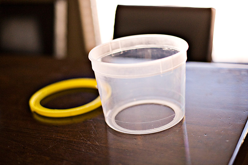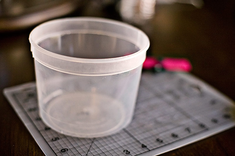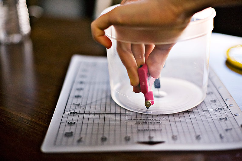 Basically for this version you cut a hole in the lid and the bottom of the container. I used an Xacto circle cutter tool I got from an Elmers Craft and Tell party with Mom Endeavors (I never got a chance to talk about it but thanks SO much Sara for having me!)