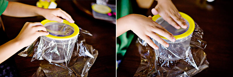 Then you can cut the extra, but if you have boys who can’t hold anything still like mine I’d just skip this step since you may need to re-adjust the plastic wrap or even put a new piece on before you use it.