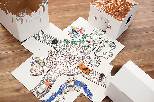 I think it would be great to give this to your kids before you leave for a trip. They can spend the travel time personalizing the mat and buildings and then once you get to where you’re going you hava portable playset to play with! It’s sturdy, portable, and fun!