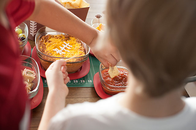 My 10 year old and I both cannot eat gluten. Eating at home is no big deal for us, but eating out and at friends’ house can be somewhat of a challenge. Parker is our house’s newest football fan. We’ve always loved football parties (what’s not to love? food, friends, football, commercials) and have hosted several ourselves! With football party season in full swing it’s inevitable that we’ll be headed to more and more parties soon. As his mom I strive to make parties (especially football parties) fun for him NOT another eating burden. I had a great idea and solution!