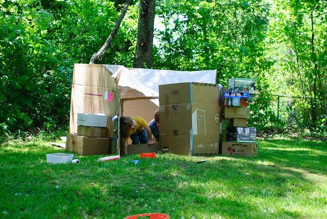 Here’s another great cardboard fort – this one collapsible from This Heart of Mine.
