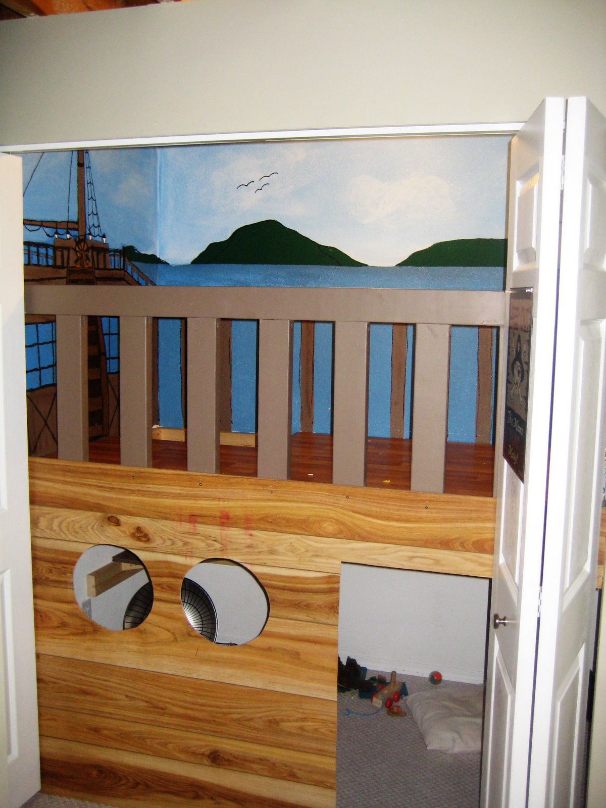 From The World Spins Madly On – they turned a closed into the perfect pirate fort for thier boys. How fun is that! Lots more pictures on their blog.