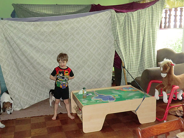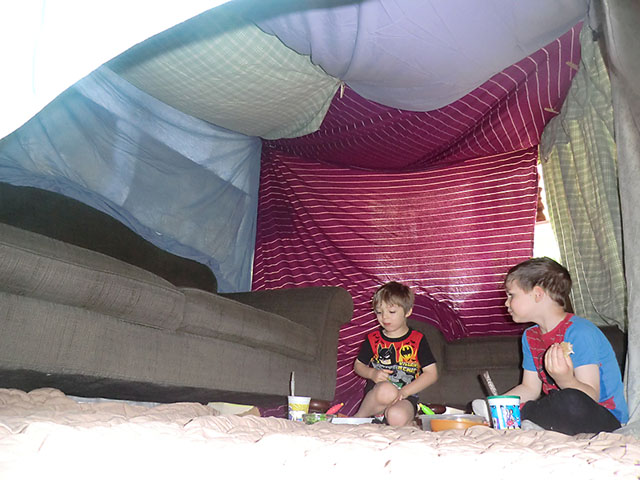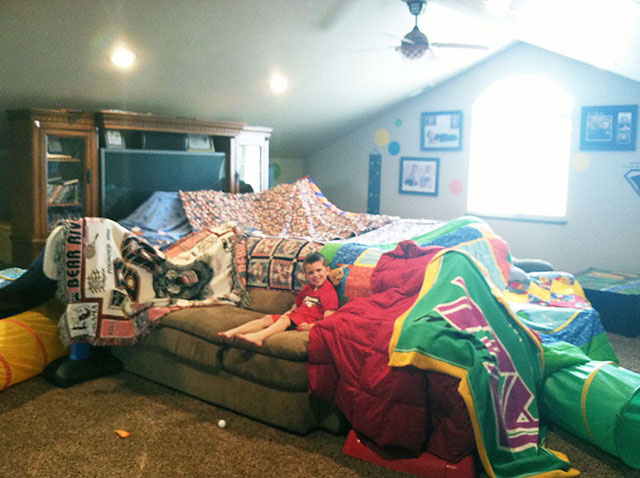Tangi and her son made a room sized fort using pretty much every blanket in the house lol! I bet it’s fun navigating inside that fort!
