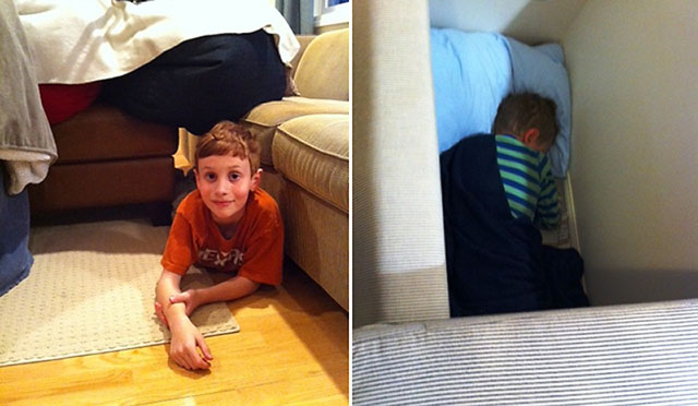 I love all these pictures! Building forts is such a great creative activity for kids and helps build imagination. One of my favorite memories from my childhood was my parents getting a new fridge and my sister and I build a "house" out of it. We played in it for weeks. @Fatcat I imagine that it's so universal because humans have been building and constructing homes for 1000's of years?? What do you think?