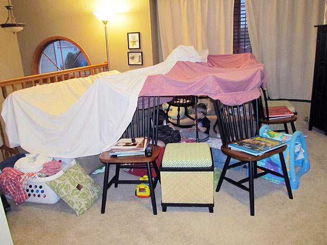 I wonder why fort building is such a universal thing? I wish I'd taken pictures of all the forts my kids have built over the years.