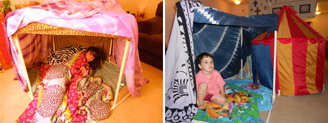 These two each made their own PVC framed forts – I love that you can see their personalities in their forts!