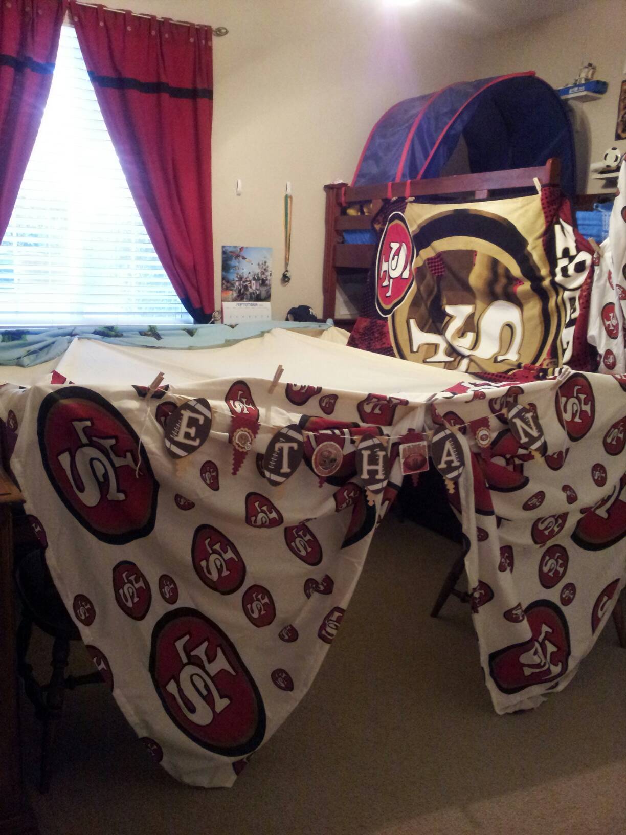 This fort has a PVC frame (which is an easy way to create structure while still being able to take it apart!)