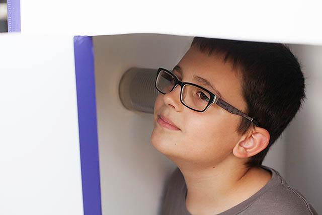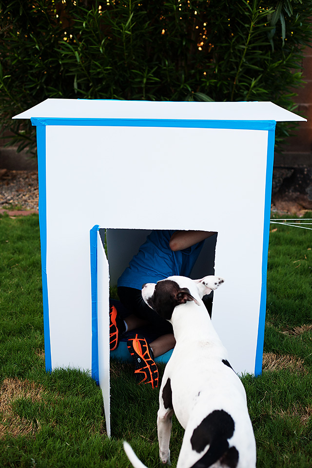 We put together these 2 forts in 20 minutes including a tin can telephone (old school!), a pulley system for snack passing and a doggy door for our mascot. The reason I LOVE duct tape for this project is because you can simply cut the seams apart at the duct tape to break down for easy storage. You’ll just have to tape it back together when you want to play again.
