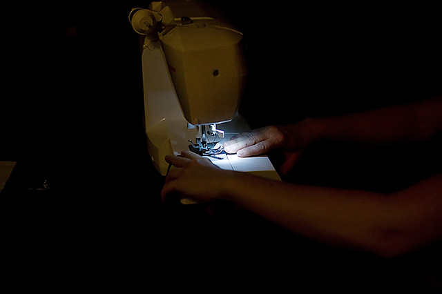 Last they all get sewn together (or you can iron them into some fabric binding as well). I used a black fabric binding for mine and sewed the triangles in. I just eyeballed the spacing – not much perfection here. And if you’re like me you’ll be sewing late at night when everyone else is sleeping!