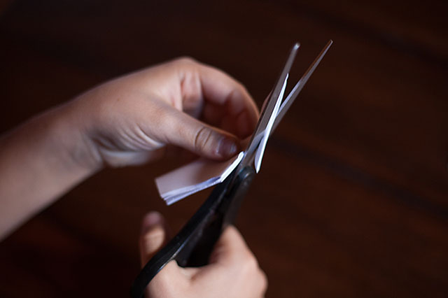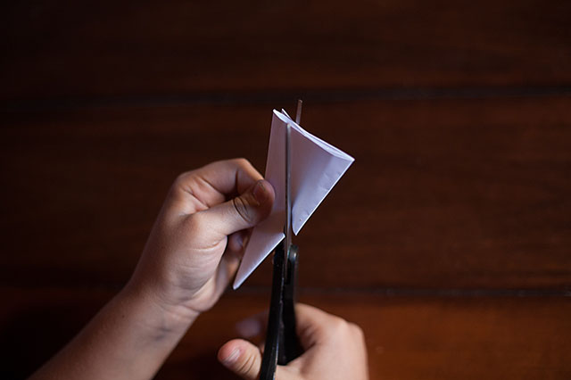 Now the fun part – cut away! Cut triangles, squares, wavy lines – whatever you like