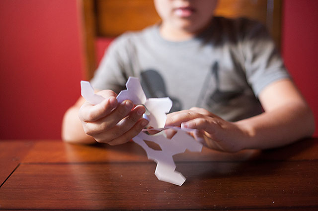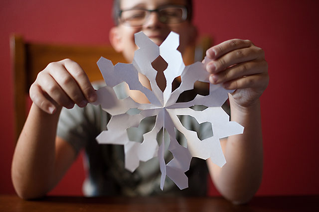 The simple, but fun, winter craft – paper snowflakes! I like this method of folding because you can cut anywhere top, bottom, or any side and your snowflake turns out – the less rules the better right?!