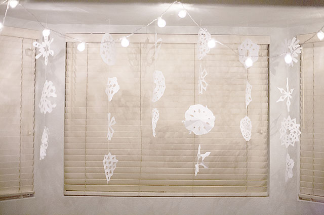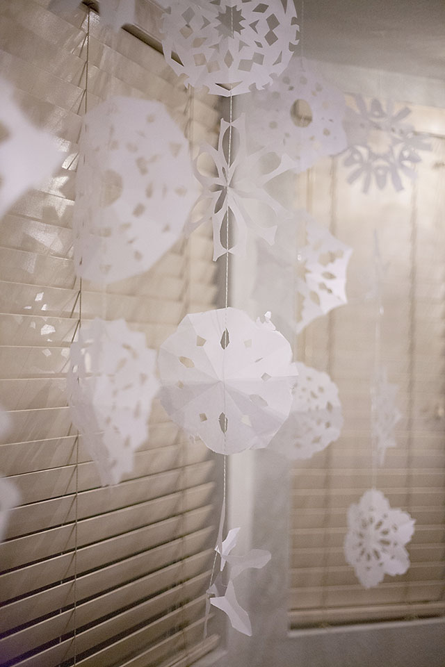 The boys made a ton of snowflakes and wanted to know where I was going to hang them all. I think I found the perfect way and now they are itching to make more!