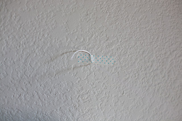 Add the straw to the string before attaching the other side to the wall. Place the tape on the top of the straw. We used washi tape so the balloon could come off and on easily. (Washi tape is basically thin, decorative masking tape so that or painters tape would work too)