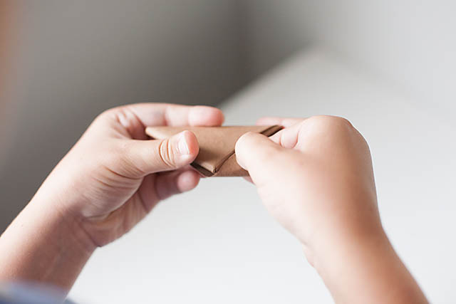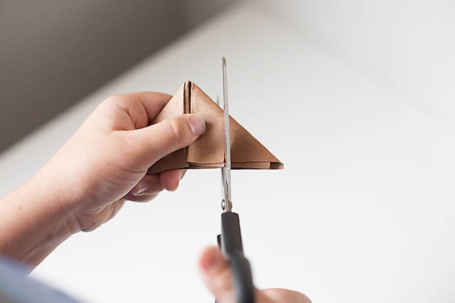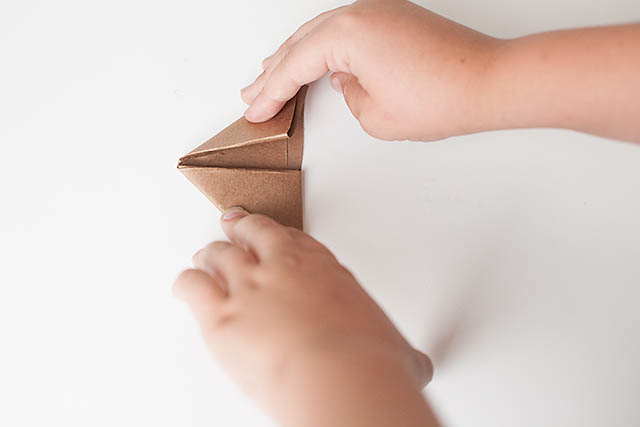 Tuck the end in to the open slot on the triangle of paper so you are “closing” the football