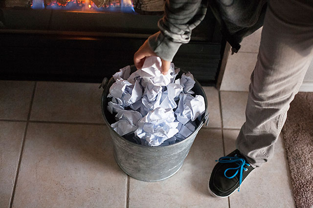 If you weren’t aware we live in the desert of Phoenix, AZ. Real snowballs have to be made in the freezer around here. We like to make our own! All you need is paper. Old school work is the best because you get to crumple it up. Get enough for a good snow storm and have fun!
