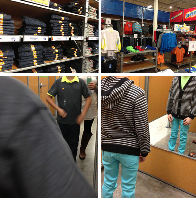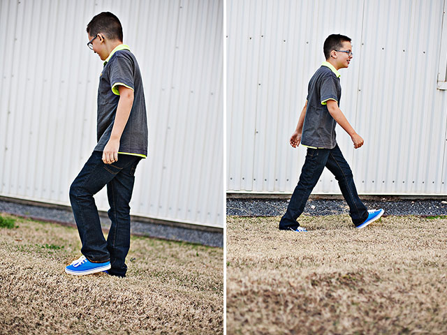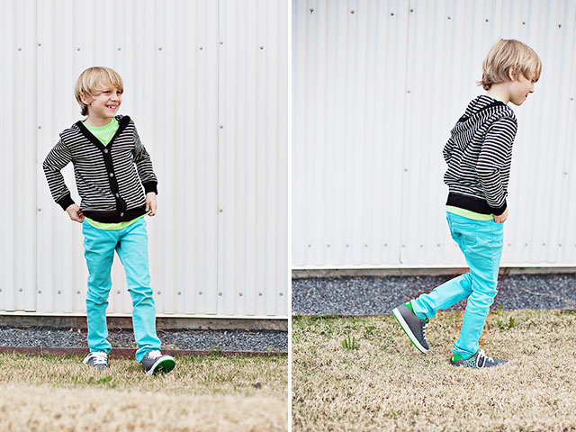 I have to tell you a “secret” about the aqua colored skinnies. He loves skinny jeans and colored skinny jeans are icing on the cake. However he is very skinny and slim cut or super skinnies are still very baggy and bulky on him. I grabbed these from the girls section and had him try them on. He was so excited to find skinnies that fit that he could care less. I told him I’d take the purple tag off the inside if he wanted but honestly he could care less because they fit well. So if you have a super slim kid you may want to try it out. The jeans my other son is wearing are Old Navy’s boy skinny jeans.