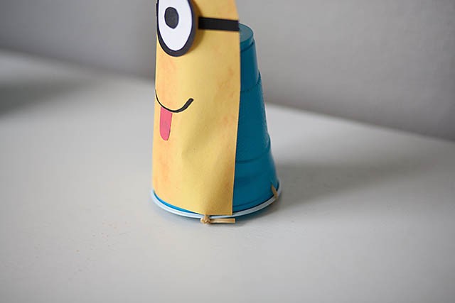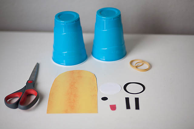 All you need is 2 plastic cups and a rubberband or two, something to poke holes with and paper if you also want to make a Minion. You can make whatever character/animal/vehicle you want to jump.