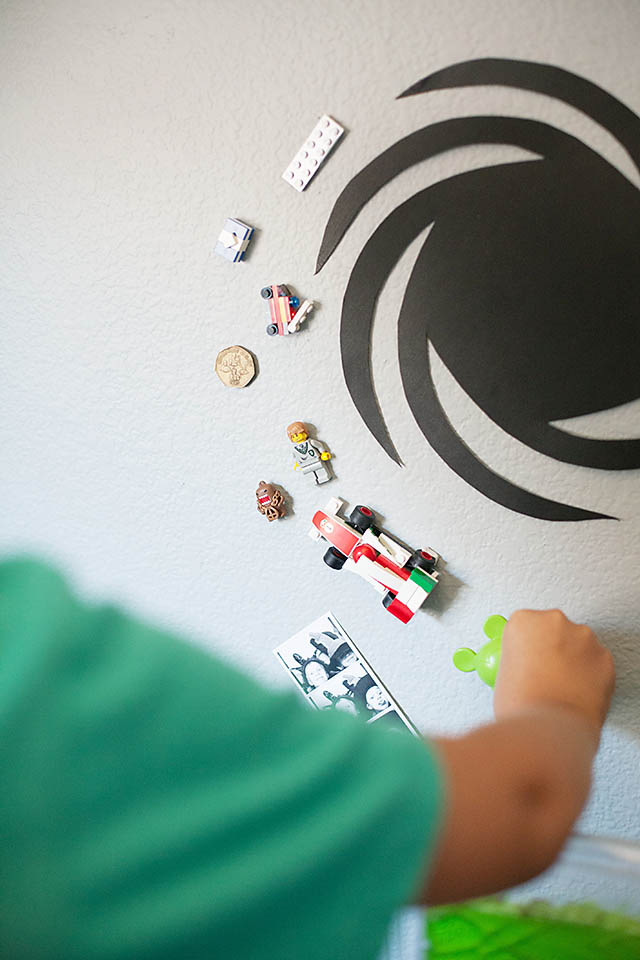 Since they were begging to make something we went with a simpler project for our first and made a black hole on the wall.