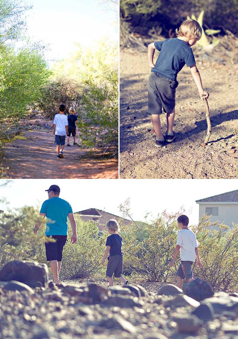Something SO simple always entertains my boys wherever we are. When they were little we used to just do it around our neighborhood. Now that they are older we can walk a little farther AND we are lucky to live right by a wash with lots of desert in it 🙂 We’ll even take little trips to the desert here and there.