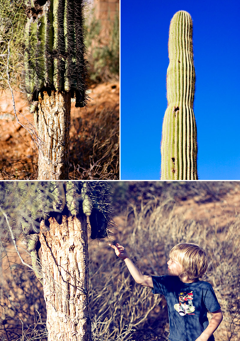 You can make it educational by talking about all the native plants and animals in your area, or just let the boys run around and play in the dirt – either way they love it! We check out the cacti and imagine what animals live or have lived in them. How they protect the animals when they choose to live inside, how long they’ve been there etc.