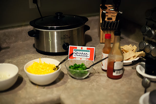 They always get to choose their dinner and he asked for a soup bar! We had 4 different soups of his choice (beef vegetable, broccoli cheddar, chicken tortilla, and clam chowder) and his favorite Coke in bottles.