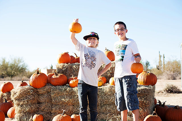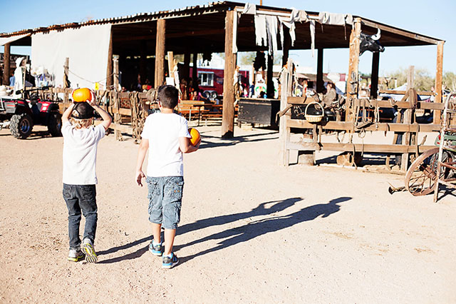 I think our “Pumpkin Patch” looks quite a bit different than a lot of yours and was thinking maybe you’d like to see how we do it here in Phoenix/Scottsdale. Last weekend we visited McDonalds Ranch. They have some ranch activities and you take a hayride out to the “pumpkin patch” (I use that term lightly lol!). The boys had a great time!