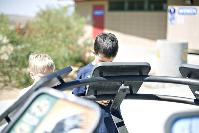Take advantage of the rest stops. This last trip on the way home (when they are just a little bit more on edge ready to get home) we stopped a few more times than usual to stretch. This is at a random rest stop in the desert of California and the boys checked out the wildlife trying to find everything that was on the display, threw rocks, ran around and got hot and tired. After 15 minutes they were asking to go back in the car 🙂