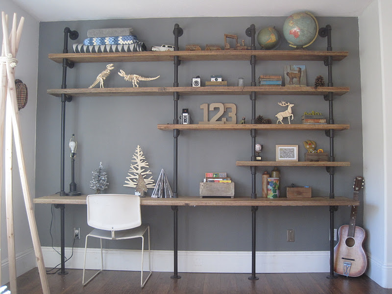 I really, really love this pipe shelf unit from House Inhabit